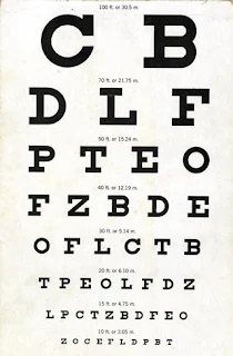 O diagramă a ochilor măsoară acuitatea vizuală (foto alăturat), care este claritatea sau agerimea vederii. Numărul de sus indică distanța de la grafic. Numărul inferior este distanța la care o persoană cu vedere normală poate citi aceeași linie.De exemplu, dacă ai vederea 20/30 înseamnă că vederea ta este mai proastă decât media. La douăzeci de pași distanță poți citi litere pe care majoritatea oamenilor le văd de la 30 de pași.